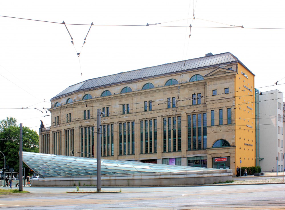 - 1911-1912 Entfernung der historistischen Fassade und Neubau einer Jugendstilfassade durch Rudolf Schilling und Julius Gräbner,