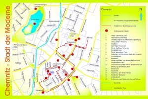 Die Nummern in den eckigen Klammern finden Sie auf der Skizze des Rundgangs durch Chemnitz.