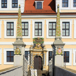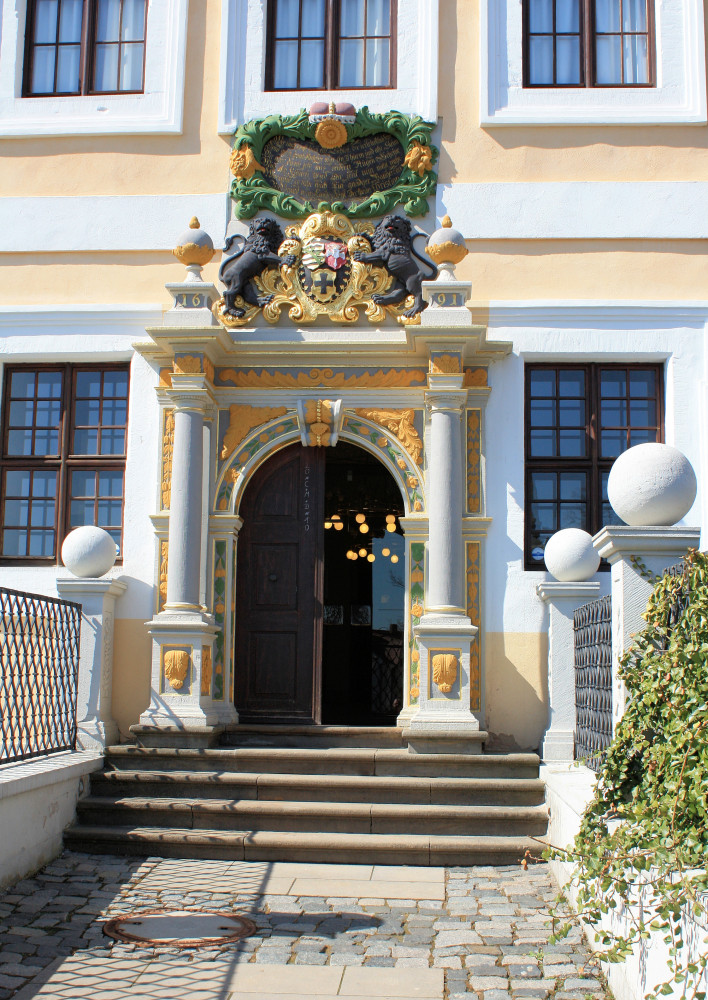 - dreizehnachsiger Hauptbau mit Sandsteinportal,