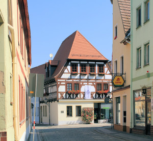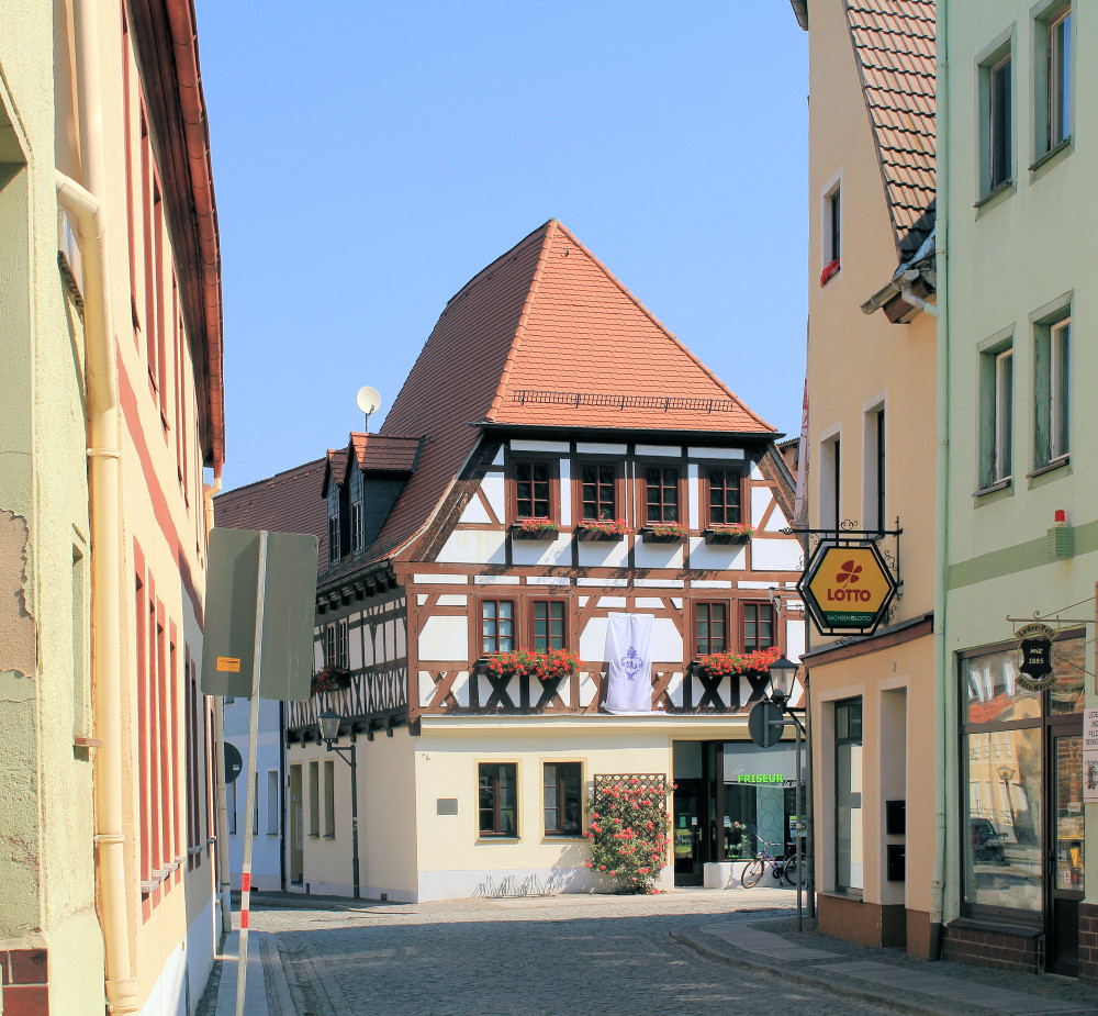 Die Nummern in den eckigen Klammern finden Sie auf der Skizze des Rundgangs durch Delitzsch.