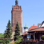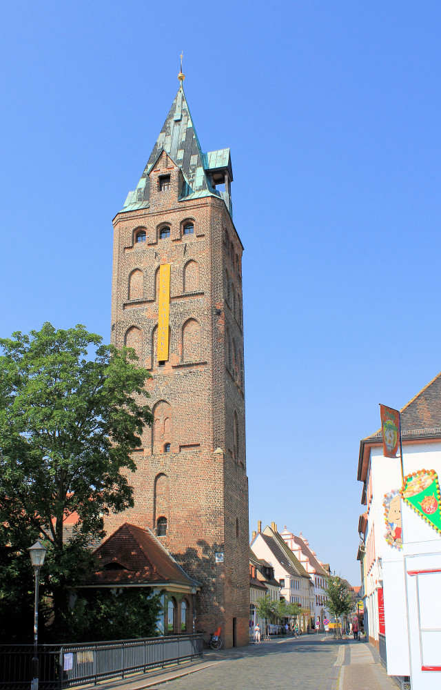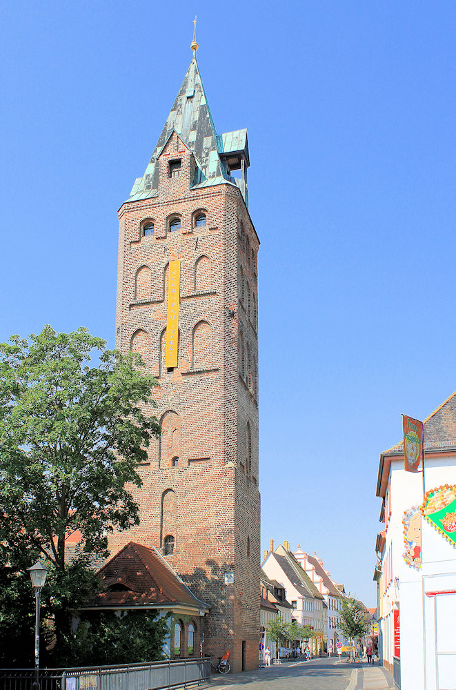 Durch die Breite Straße gelangt man zum Breiten Turm [9], dem östlichen Zugang zur mittelalterlichen Stadt. Der um 1395 errichtete Wachturm ist durch spitzbogige Blendarkaturen gegliedert.