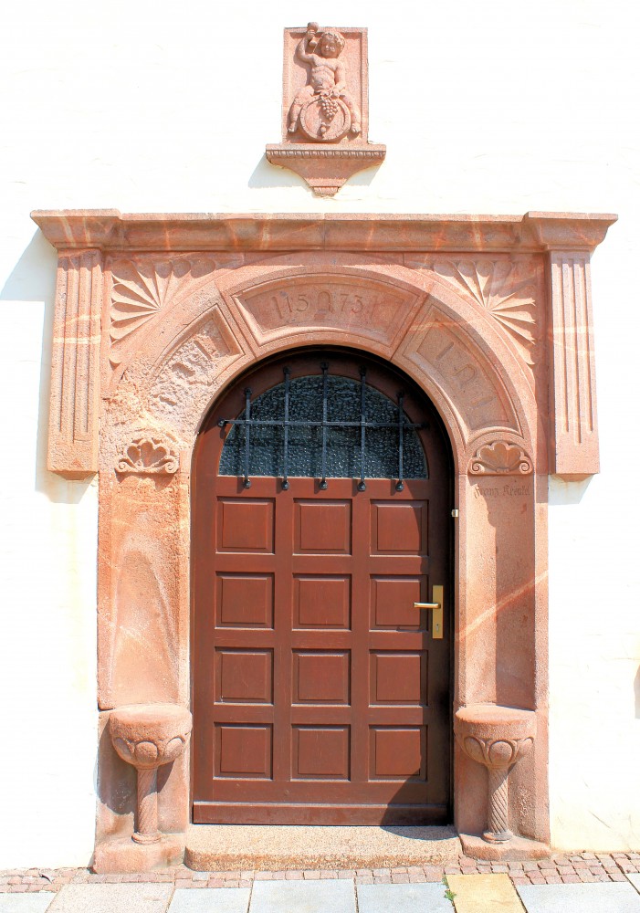 - 1674 errichteter Putzbau mit Fenstergewänden aus Porphyr und spätgotischem Wandfries,