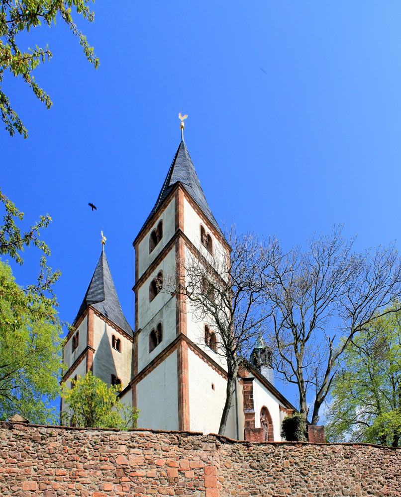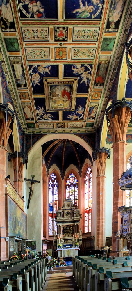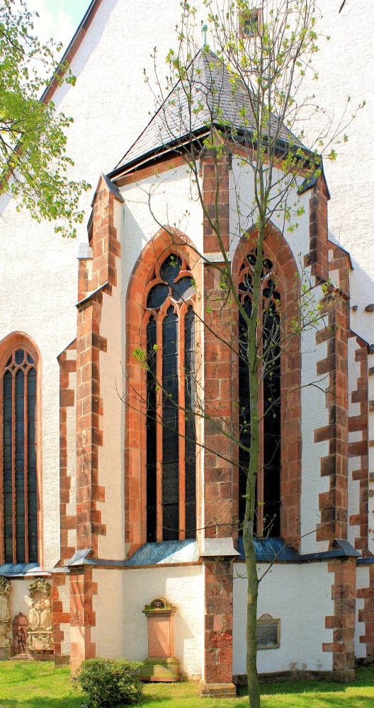 Ev. Stadtkirche St. Nicolai [4]:- Dreischiffige Hallenkirche mit Doppelturmfront im Westen,