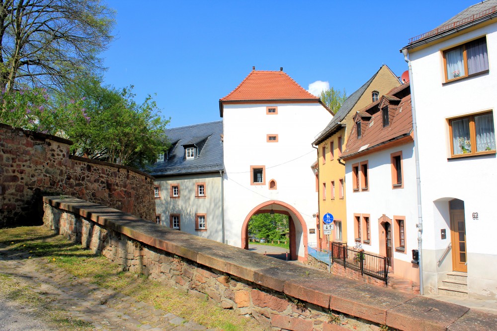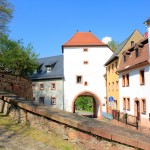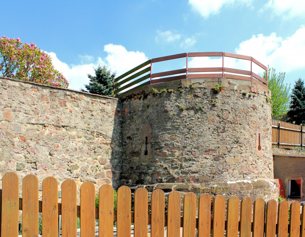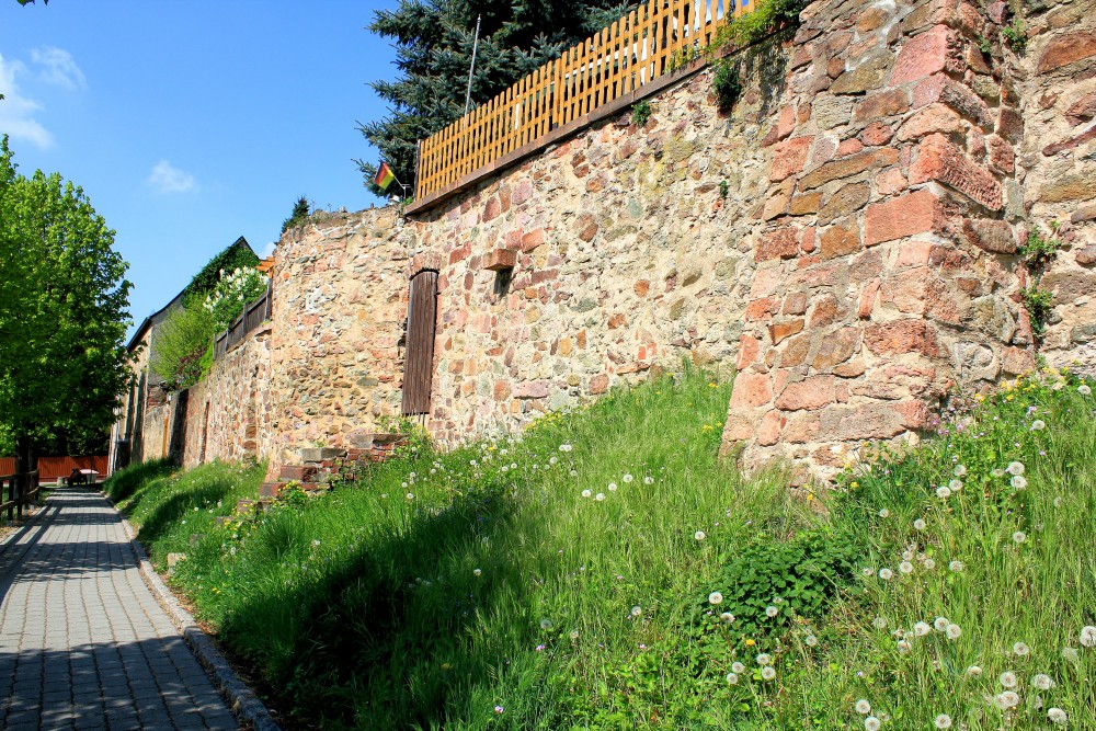 Zurück durch den Freigarten und die Querstraße gelangen Sie zur Dresdener Straße. Sie führt in östlicher Richtung in den Ortsteil Wickershain zur St. Marienkirche [10].Die Ev. St. Marienkirche liegt weithin sichtbar auf einer Anhöhe über der Eula. Die romanische Saalkirche mit Chorturm und hohem Satteldach stammt aus dem 12. Jahrhundert. Der Chorturm wurde im 13. Jahrhundert errichtet. Ab 1424 wurde die Marienkirche in Geithain erweitert. Die Marienstraße führt zurück in die Altstadt. An der Bruchheimer Straße biegen Sie nach links ab und dann nach rechts in das Rosental. Hier haben Sie die Möglichkeit, entlang der südlichen Stadtmauer [11] zu laufen. Einst war nur die St. Nikolaikirche von einer Mauer umgeben. Mit der Verleihung des Stadtrechtes wurde diese Mauer um die gesamte Stadt erweitert.