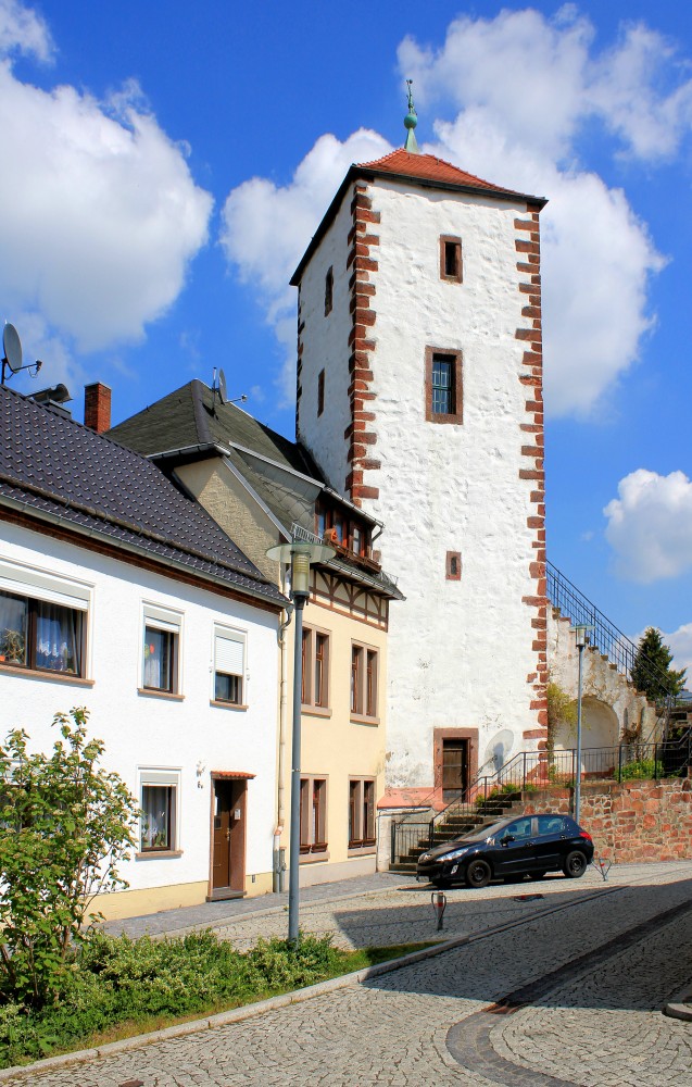 Vom Markt gelangt man durch die Katharinenstraße zum Freigarten. Hier steht der Pulverturm [9], ein Teil der Geithainer Stadtbefestigung. Der Pulvertrum aus dem 12. Jahrhundert gehörte zu einem Freihof. Hier wohnte der Richter der Stadt, der Turm war Teil seines befestigten Hofes.