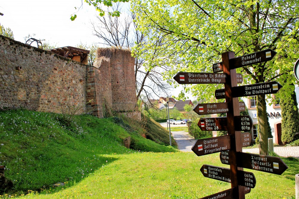 - eins von vier Stadttoren (Untertor) und ein Stadtmauerturm (Pulverturm) erhalten,