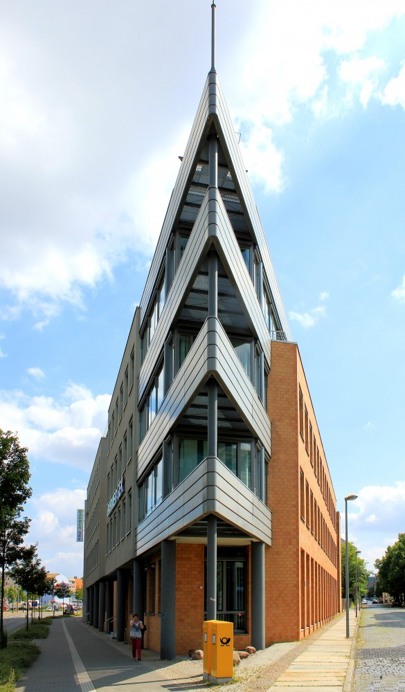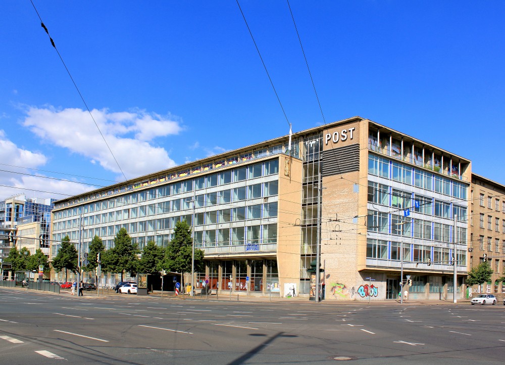 Bahnpostamt: (Brandenburger Straße), neobarocker Bau gegenüber des Hauptbahnhofes, achtzehnachsig, Mittelrisalit mit Portal, dreiachsig mit Wellengiebel, Seitenrisalite mit Gaube,Reichsbahnamt: (Brandenburger Straße), historistischer Klinkerbau mit klarer Fassadengliederung, Ostteil zerstört und nach 1945 vereinfacht und überhöht wieder aufgebaut,