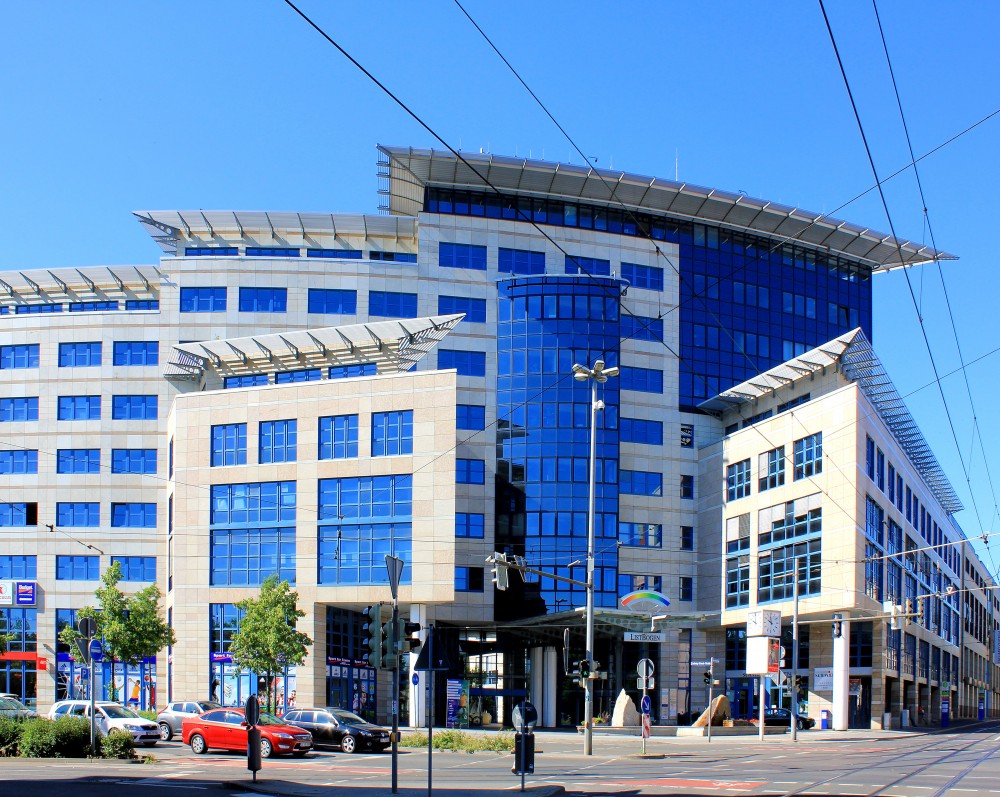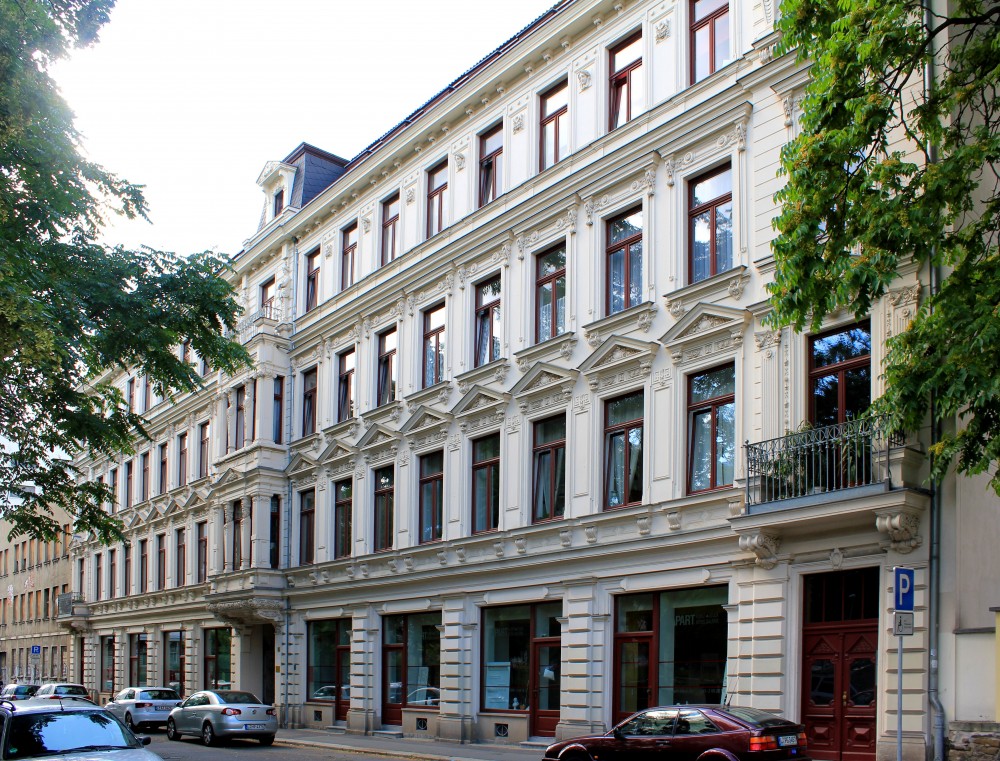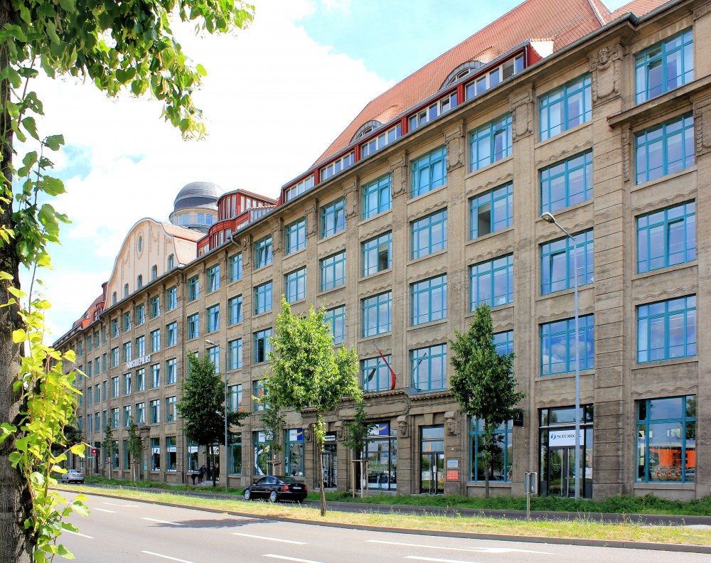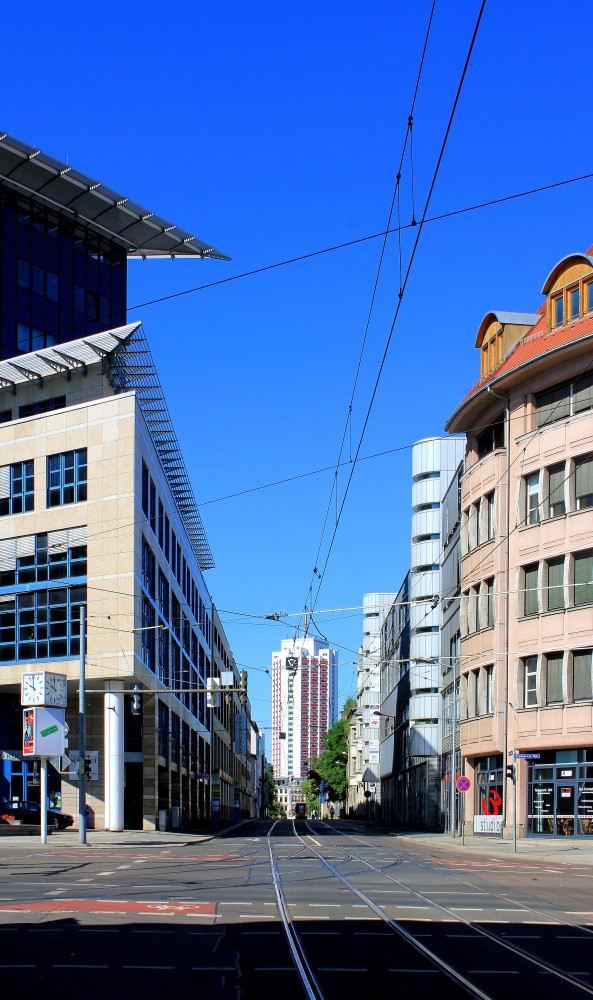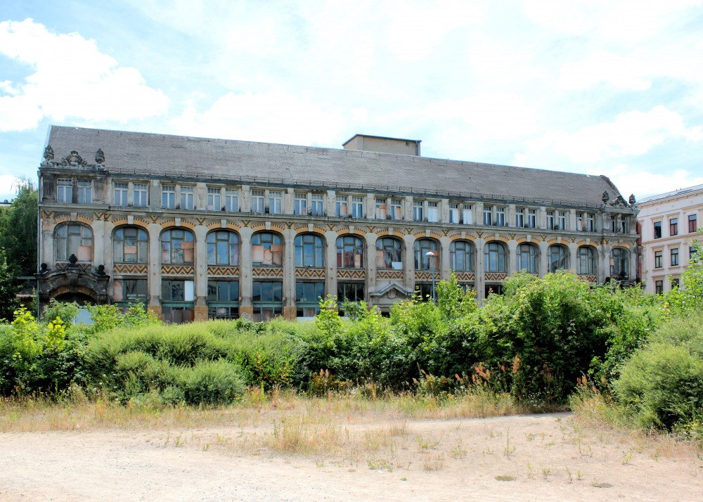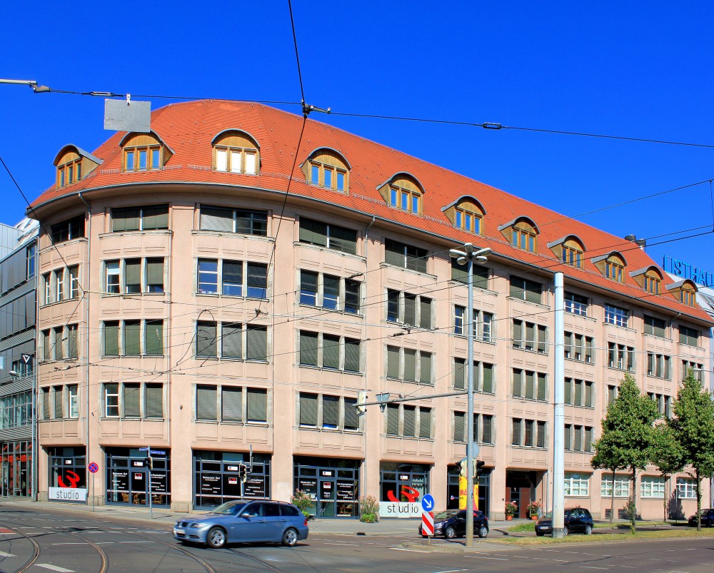 Der Rundgang durch das Grafische Viertel beginnt am Johannisplatz (Haltestelle Haltestelle Straßenbahn 4 Richtung Stötteritz, 7 Richtung Sommerfeld und 12 Richtung Johannisplatz). Folgen Sie der Dresdner Straße nach Osten.