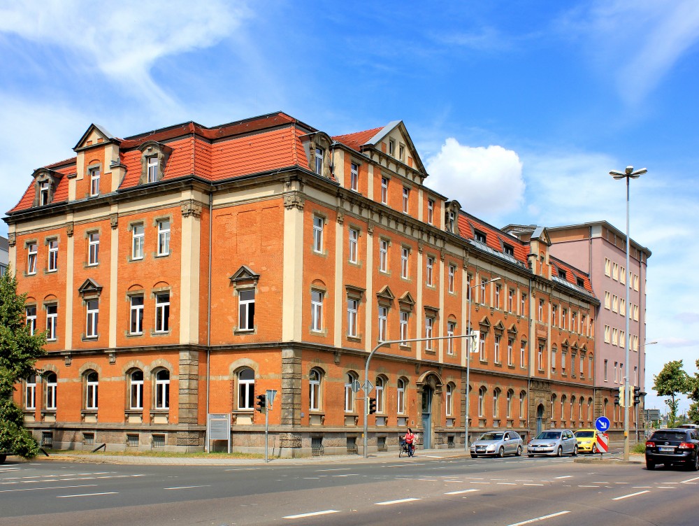 Ehem. Buchdruckerei Oscar Brandstetter: (Haus des Handwerks, Dresdner Straße 11 bis 13), 1906 erbaut im Stil der Neorenaissance nach Plänen von Curt Nebel, reiches Fassadendekor mit Bezug auf die Nutzung des Hauses, Mittel- und Seitenrisalite, Gebäudeecke turmartig ausgebildet, anschließender Klinkerbau mit Turmaufbauten,