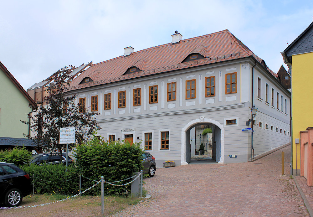 Über der Stadt erhebt sich die bedeutende spätgotische Stadtkirche St. Marien. Im 15. Jahrhundert erfolgte der Bau des Gotteshauses das Ende des 19. Jahrhunderts durch Hugo von Altendorff restauriert wurde. Von der einstigen Befestigung des Kirchhofes sind Teile erhalten, darunter auch eine Vielzahl in den Berg hineingegrabener Gänge und Gewölbe. In Nachbraschaft der Kirche befinden sich die ehemaligen Pfarrhäuser, heute Stadtmuseum, die Alte Schule, heute Haus der Kirchgemeinde, und die klassizistische Pestalozzischule.Eher bescheiden ist das Alte Rathaus der Stadt in der Rochlitzer Straße, ein zweigeschossiger Barockbau. Imposanter ist das Gebäude des ehem. Amtsgerichtes direkt am Markt, das heute Sitz der Stadtverwaltung ist.