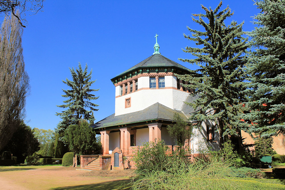 - 1906 im Jugendstil durch Rudolf Schilling und Julius Gräbner errichteter Zentralbau auf oktogonalem Grundriss,