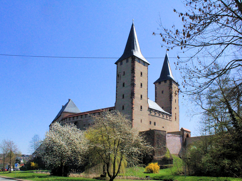 Rochlitz konnte seine geschlossene historische Bebauung in der Altstadt bewahren. Die Altstadt von Rochlitz prägen die Türme des Schlosses.Der Rundgang durch Rochlitz beginnt am Schloss [1]. Die mächtige Anlage steht auf einem schmalen Bergrücken über der Zwickauer Mulde. Die zweitürmige Westfront prägt das Stadt- und Landschaftbild. Die vermutlich bereits im 10. Jahrhundert angelegte Burg wurde im 12. und 13. Jahrhundert ausgebaut und vor allem im 16. Jahrhundert zum Schloss umgebaut. Um den unregelmäßigen, schmalen Schlosshof gruppieren sich das Querhaus im Osten mit der Burgkapelle und das Fürstenhaus im Norden mit anschließendem Wehrgang. Die Gebäude auf der Südseite entstanden in verschiedenen Jahrhunderten und beinhalten u.a. den Palas (Altes Haus) und zwei Wohntürme. Den Abschluss des Schlosshofes nach Westen bilden die zwei Türme „Lichte und Finstere Juppe“.