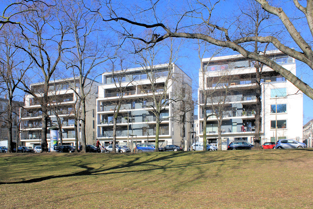 Auf der rechten Straßenseite befindet sich der Clara-Zetkin-Park [7]. 1955 wurde die innerstädtische Parklandschaft aus Johannapark, Scheibenholzpark, König-Albert-Park und Palmengarten zusammengefasst unter dem Namen „Zentraler Kulturpark Clara Zetkin“. Im Sinne der Kulturparkbewegung in der DDR entstanden Kultur- und Sportanlagen. Damit ist der Clara-Zetkin-Park in Leipzig vermutlich die erste große Anlage in Deutschland, die nach diesen Gesichtspunkten gestaltet wurde. Heute umfasst der Clara-Zetkin-Park nur noch den Teil des früheren König-Albert-Parks, die anderen Parkteile erhielten 2011 ihre alten Namen zurück. Von 1950 bis 1958 führten um und durch das Gelände des Parks die 4,3 km lange Strecke der Leipziger Stadtparkrennen für Motorräder, Sport- und Rennwagen mit bis zu 200.000 Zuschauern. Die meisten der insgesamt 11 Veranstaltungen waren gleichzeitig auch die DDR-Meisterschaften im Motorrennsport.