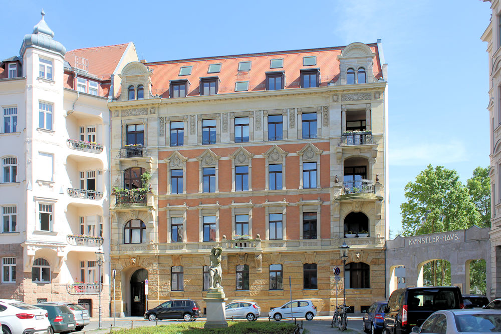 Vom Dorotheenplatz führt der Rundgang weiter durch die Elsterstraße und über eine Grünfläche zum Nikischplatz [16]. Hier stand das Künstlerhaus, das im 2. Weltkrieg zerstört wurde, nur das Eingangsportal und ein Gedenkstein für im 1. Weltkrieg gefallenen Leipziger Künstler blieb erhalten. Auf dem Nikischplatz stehen Kopien von zwei Fechtern aus dem Boseschen Garten, der sich hier erstreckte.