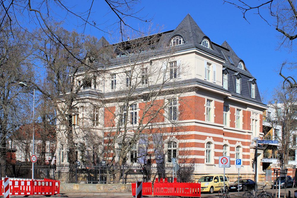 Auf dem Grundstück Friedrich-Ebert-Straße 67 gründete Julius Blüthner 1853 seine Pianofabrik. Das 1879 gebaute Haus diente viele Jahre als Firmensitz.