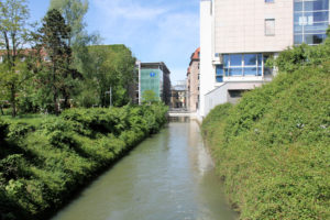 Entlang des Elstermühlgrabens führt der Rundgang durch das Zentrum-West zum Poniatowskidenkmal [3]. Fürst Poniatowski ertrank an dieser Stelle beim Versuch, den Fluss zu überwinden. Die Gewässer in der Leipziger Innenstadt verkamen im 20. Jahrhundert zu Abwasserkanälen und wurden nach dem 2. Weltkrieg verrohrt. Seit 1999 werden die innerstädtischen Gewässer wieder geöffnet. Der Elstermühlgraben fließt an dieser Stelle noch unter der Erde – seine Öffnung soll bald erfolgen.