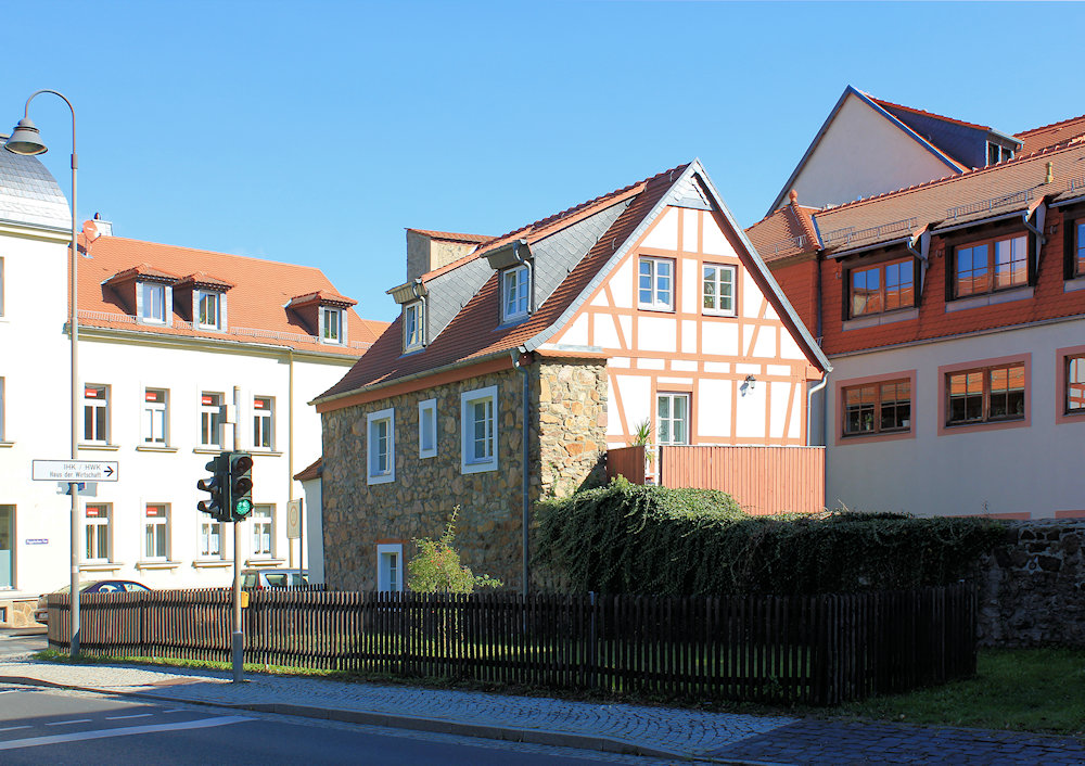 Das Stadtschreiberhaus wurde am ehem. Pappischen Tor in Grimma angebaut und steht heute frei am westlichen Rand der Altstadt.