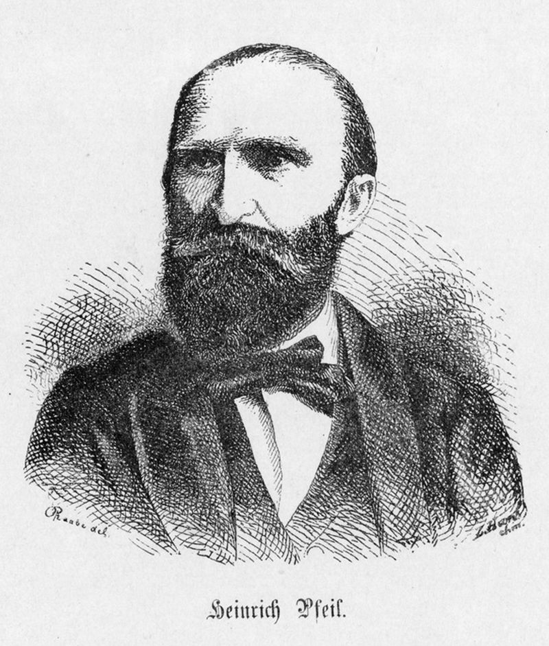 Heinrich Pfeil wurde am 18. Dezember 1835 in Leipzig geboren. Der Sohn eines Buchdruckers besuchte die Ratsfreischule in Leipzig und erfuhr musikalische Anleitungen durch seinen Musiklehrer Carl Friedrich Zöllner.