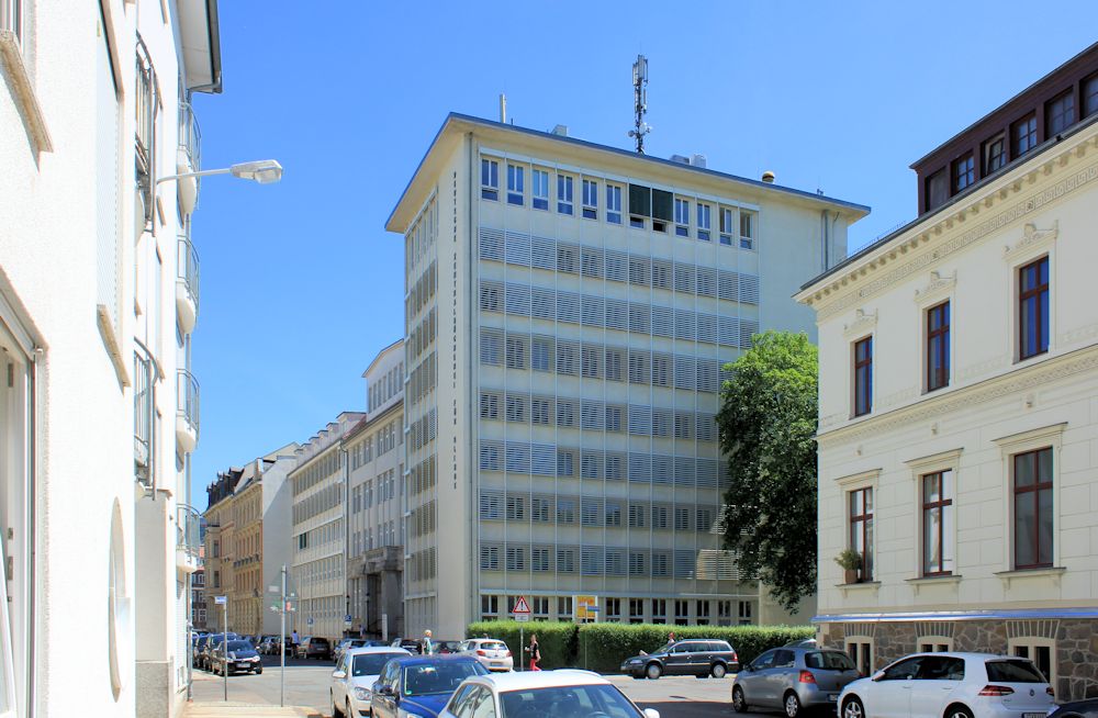 Der Südgiebel des Bundesverwaltungsgerichtes am Pleißemühlgraben