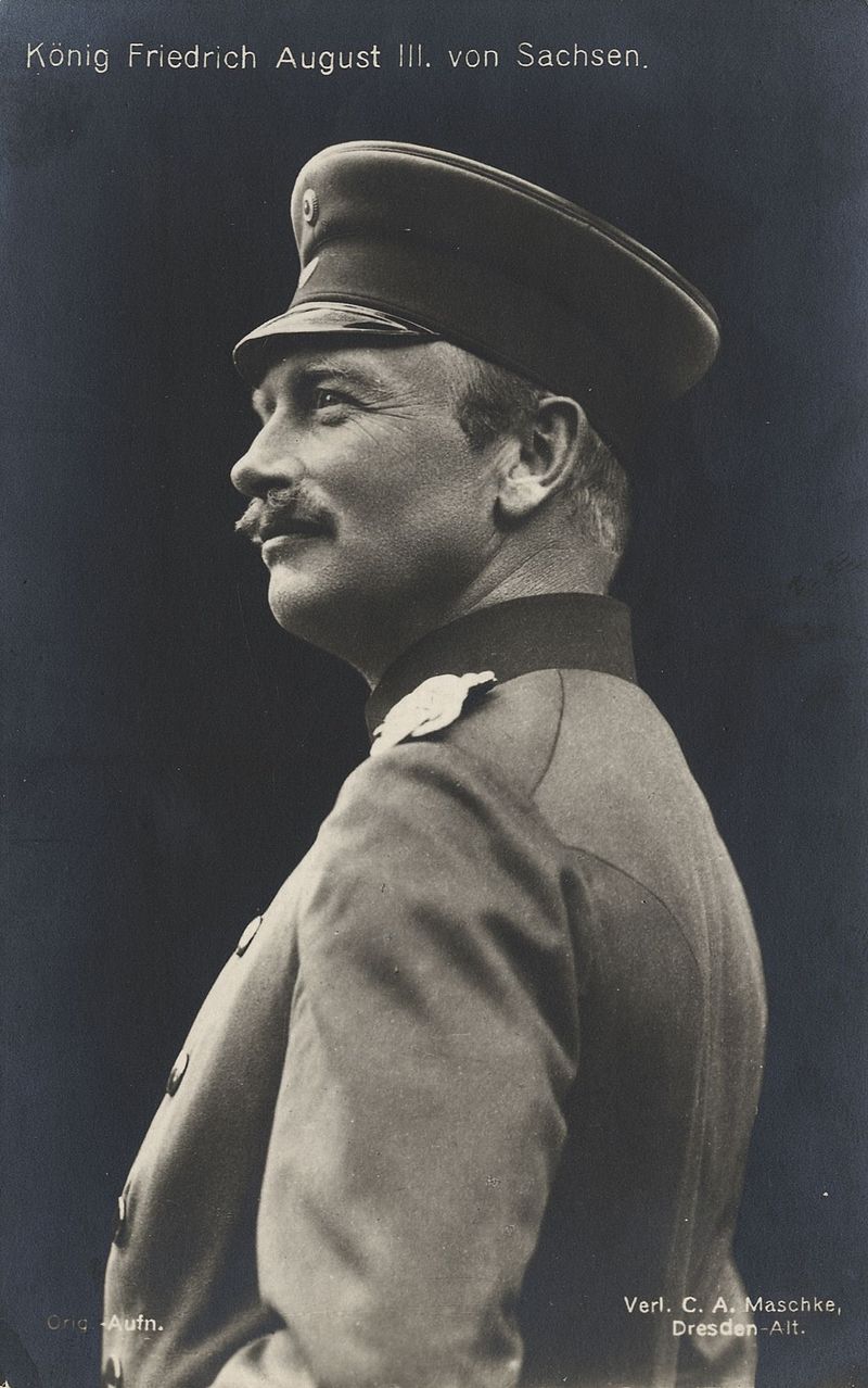 „… na da machd eiern Drägg alleene!“ soll der letzte sächsische König Friedrich August III. bei seiner Abdankung gesagt haben. Das ist Legende. Friedrich August galt als konservativ und konfliktscheu, manchmal war er aber auch recht tolerant, so z.B. im Jahr 1906, als er den liberalen Grafen Hohenthal zum Innenminister ernannte, der das Pluralwahlrecht in Sachsen einführte. Hohenthal starb 1909 und mit ihm die politischen Reformen im Königreich Sachsen.