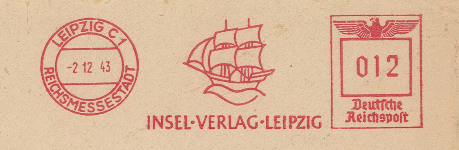 Absenderfreistempel des Verlags vom 2. Dezember 1943 (Verwendung gut einen Tag vor dem Bombenangriff auf Leipzig)