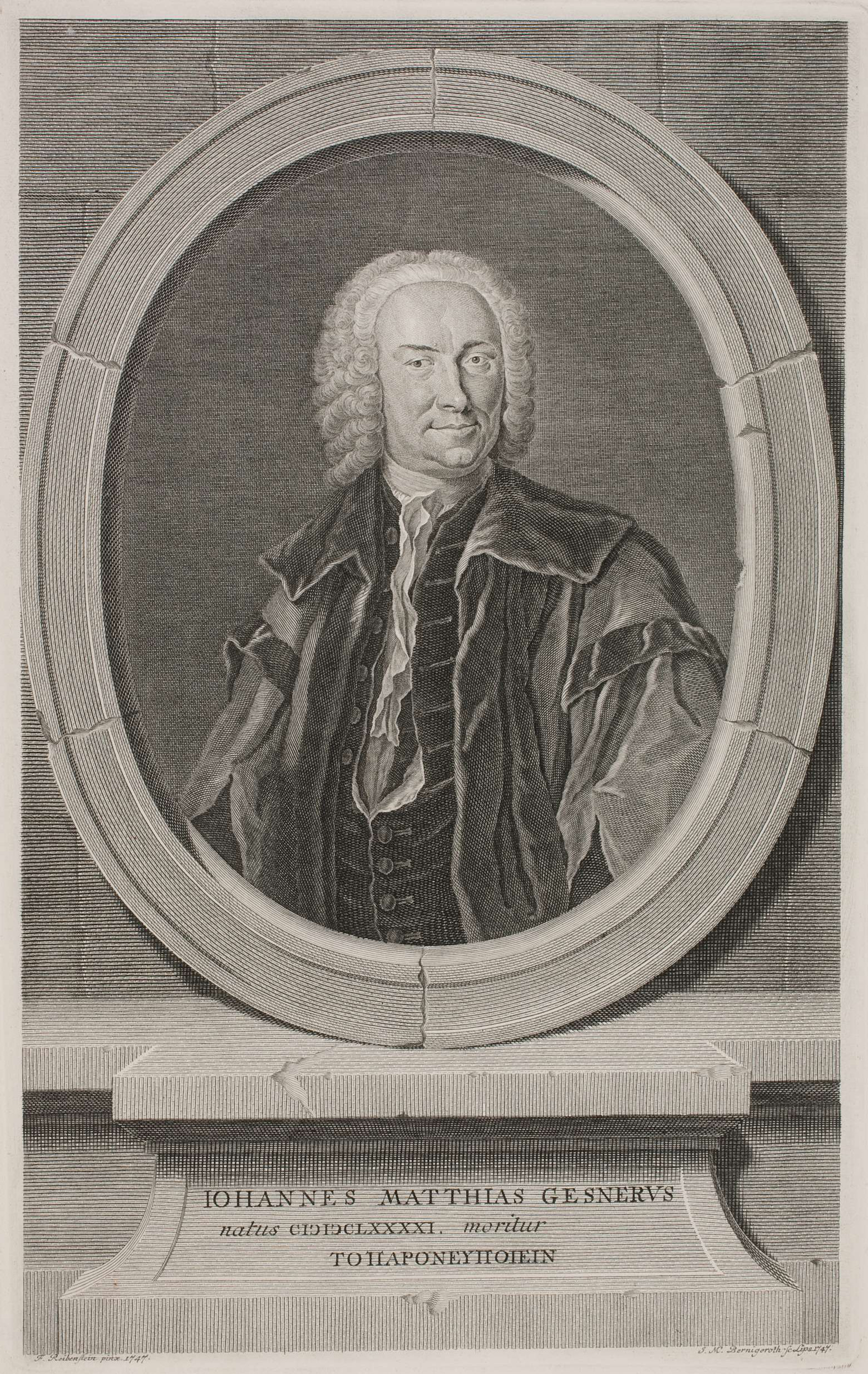Johann Matthias Gesner wurde am 9. April 1691 in Roth bei Nürnberg geboren. Der Pfarrerssohn studierte an der Universität Jena Philologie und wirkte 1715 bis 1729 als Konrektor in Weimar und Verwalter der herzoglichen Bibliothek und Münzsammlung.1730 bis 1734 war Johann Matthias Gesner Rektor der Thomasschule in Leipzig und bemühte sich um die Verbesserung der Bedingungen an der Schule. In Gesners Amtszeit fällt die Erweiterung und Reformierung der Thomasschule. Johann Sebastian Bach kannte Gesner bereits aus seiner Weimarer Zeit und fand in ihm einen verständnisvollen Vorgesetzten und Freund. Johann Matthias Gesner war begeistert von Bachs Dirigierkunst.