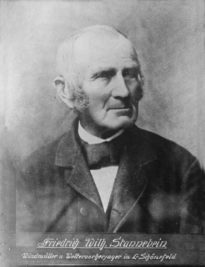 Friedrich Wilhelm Stannebein wurde am 29. März 1816 in Dölsdorf geboren. Er erlernte das Müllerhandwerk und kam 1841 nach Schönefeld bei Leipzig. Hier pachtete Stannebein eine Windmühle, die nach der Zerstörung in der Völkerschlacht bei Leipzig am 18. Oktober 1813 im Jahr 1826 neu aufgebaut wurde.