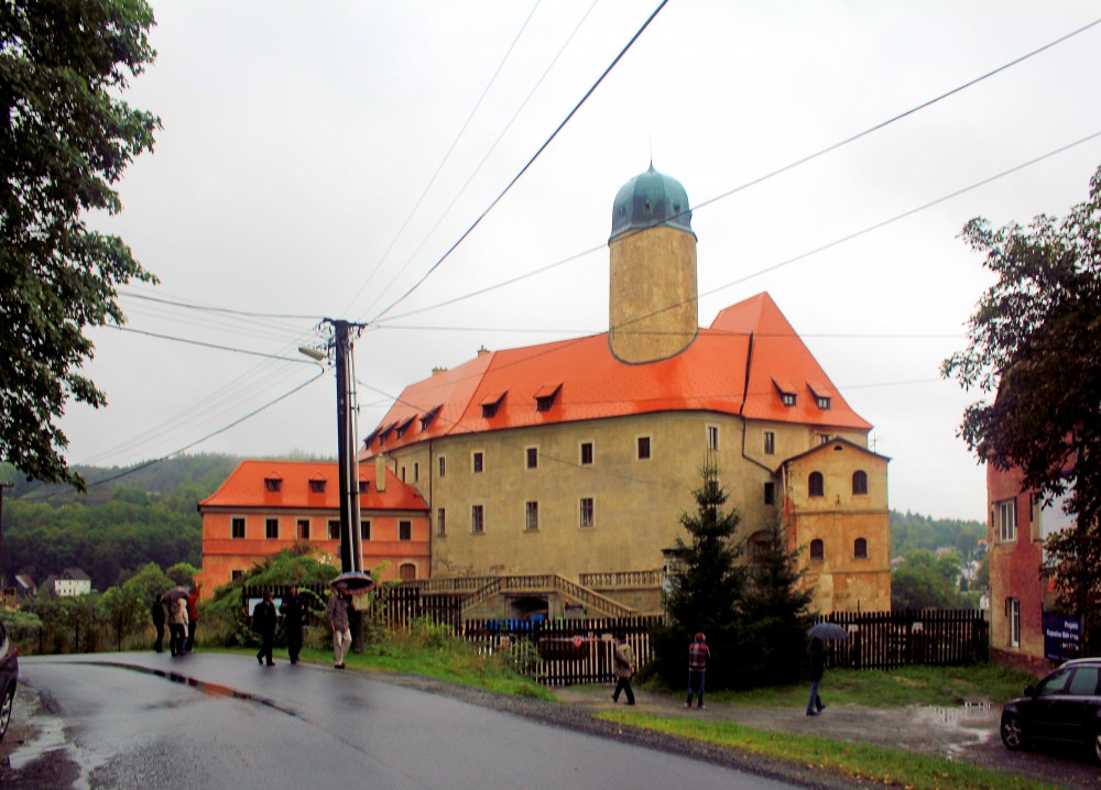 Die Exkursion begann im Ascher Ländchen im Dreiländereck Böhmen, Bayern und Sachsen. Erstes Ziel war Neuberg (Podhrady). Das Dorf Neuberg entstand wohl bereits im 12. Jahrhundert zu Füßen der gleichnamigen Burg. Besitzer der Herrschaft war das Geschlecht der Ritter von Neipperg. 1394 fiel der Besitz der Neipperger, die sich zuletzt von Neuberg nannten, nach den Tode Konrads von Neuberg als Erbe an die Familie von Zedtwitz. Im Dreißigjährigen Krieg wurde die Burg verwüstet. 1690 erfolgte der Bau des Schlosses Sorg, 1693 wurde das Schloss Neuschloss errichtet. Unterhalb der Burg entstand das Schlössel. Nach einer Teilung der Herrschaft erfolgte 1750 der Bau des Schlosses Unterteil sowie 1752 des Schlosses Oberteil. Für diesen Bau wurde die Burg als Baumaterialspender genutzt.