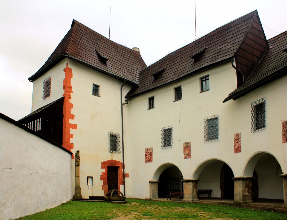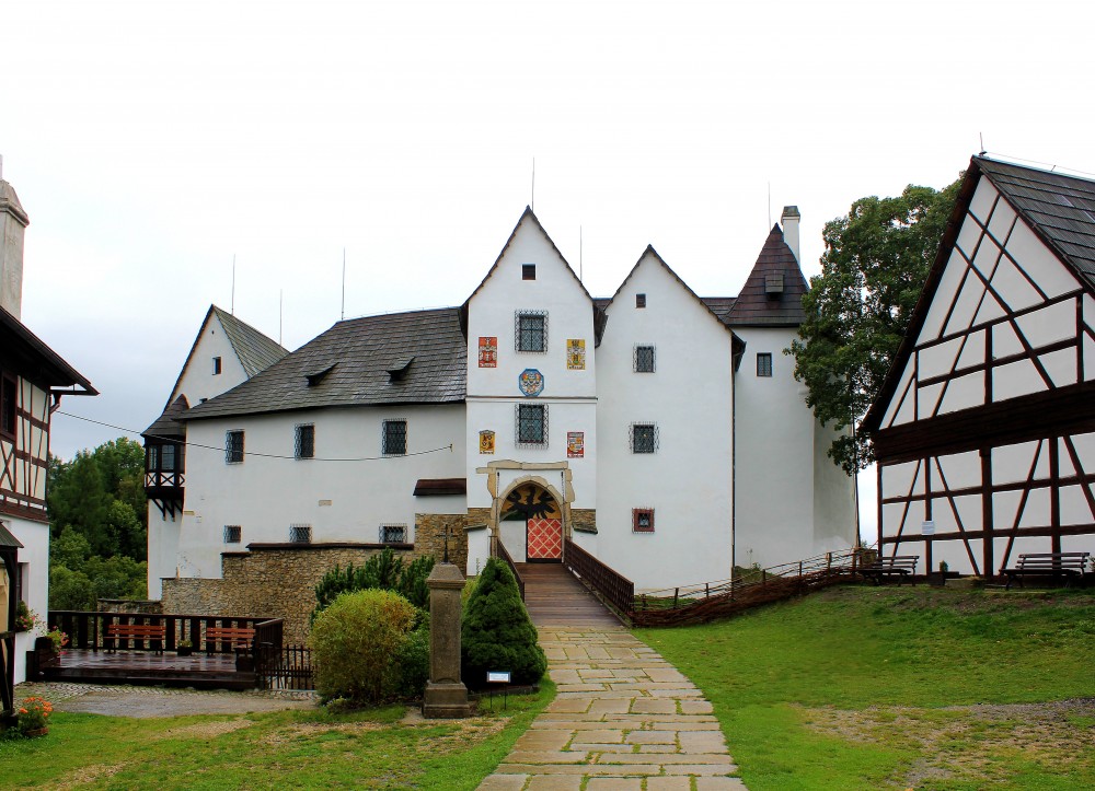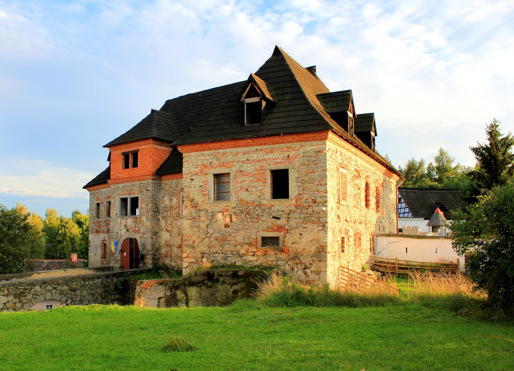 Anstelle einer älteren Befestigung wurde im 15. Jahrhundert eine gotische Burg erbaut. Die Burg und das Dorf bekam 1466 Burian von Guttenstein, ein Widersacher des Königs Georg von Podiebrad. Die Burg wurde 1467 vom königlichen Heer erobert und zerstört. Später erhielt Mikuláš Lobkowiccz durch Heirat das Dorf und ließ auf den Grundmauern der Burg ein Renaissanceschloss erbauen. 1579 verkaufte er die Herrschaft wieder. Ende des 17. Jahrhunderts wurde das Schloss im Barockstil umgebaut.