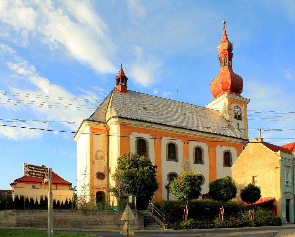 Unweit der Burg- und Schlossanlage steht die barocke Dorfkirche „Zum guten Hirten“. Sie wurde zwischen 1470 und 1490 durch den Egerer Burggrafen Heinz von Zedtwitz als Burg- und Begräbniskapelle erbaut. 1542 wurde die Kirche evangelisch und ist damit angeblich die älteste evangelische Kirche auf dem Territorium von Österreich-Ungarn.