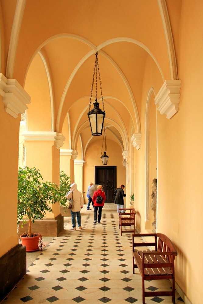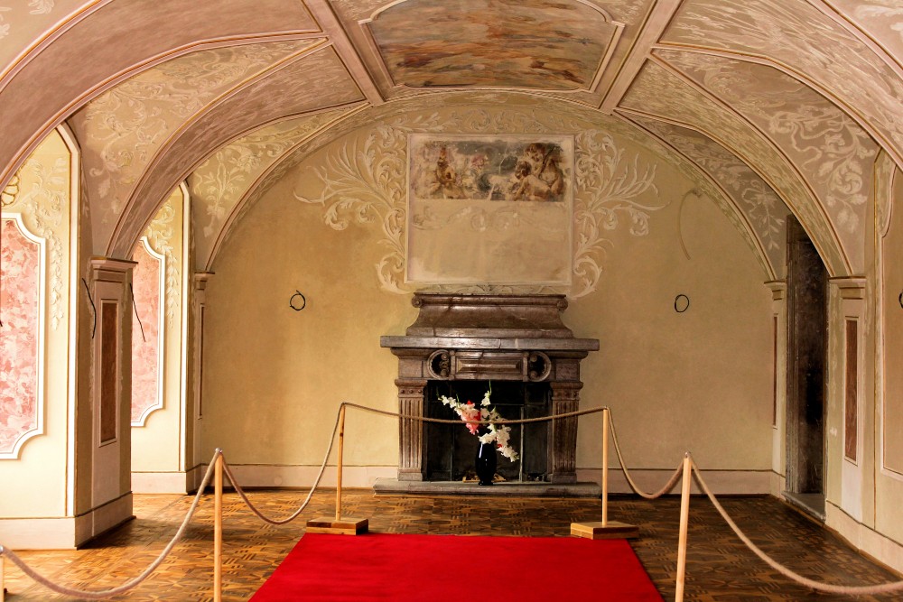 Die Inneneinrichtung, die ebenfalls am Ende des 18. Jahrhunderts umgestaltet wurde, besteht aus historischen Möbeln und Sammlungen von Gemälden und Porzellan.