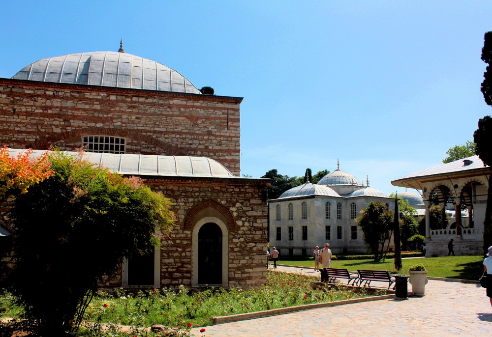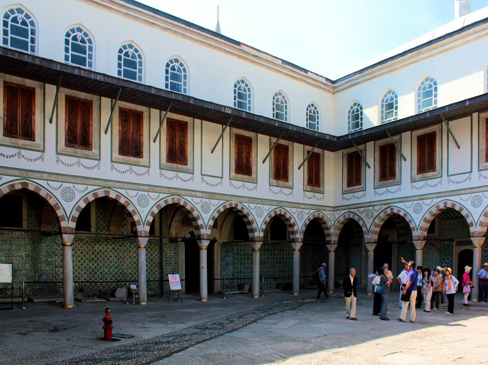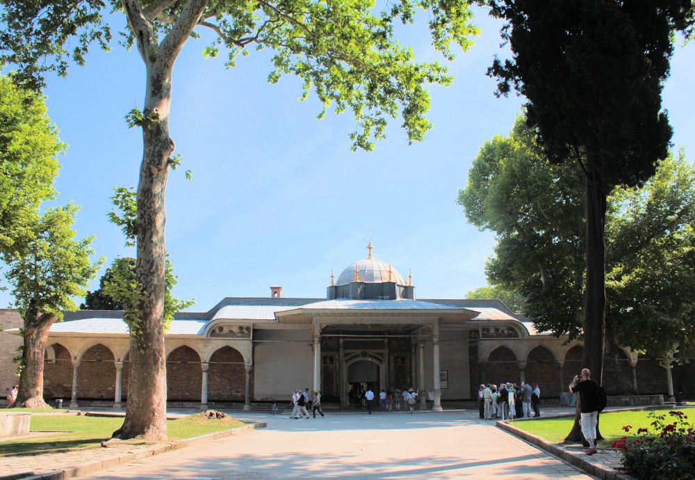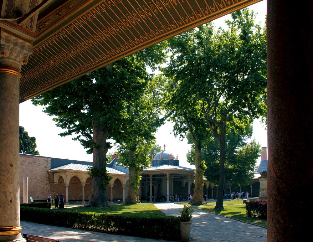 Durch das Tor des Friedensgrußes gelangt man in den zweiten Hof. Hier befinden sich die Palastküche, eine kleine Moschee und der Kubbealti, der Eingang zum Harem.