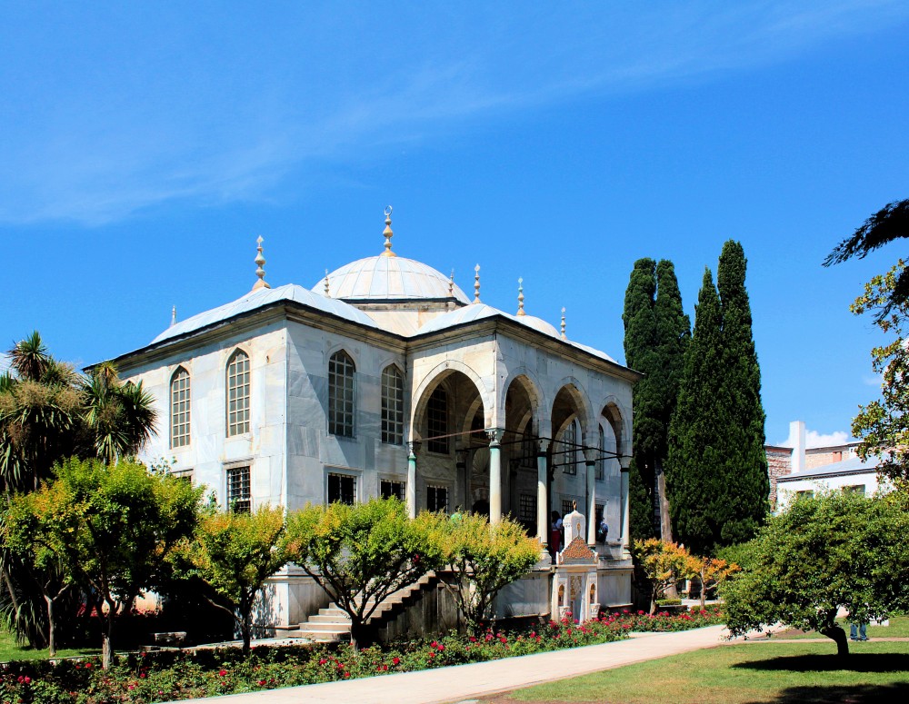 Der vierte Hof, der Tulpenhof, war ausschließlich dem Sultan und seinen engsten Vertrauten vorbehalten. Hier stehen mehrere Pavillons in einer Gartenanlage.