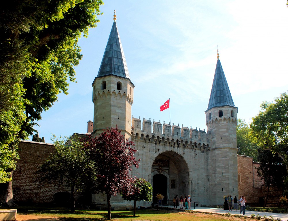 Vier Jahrhunderte lang war der Topkapi-Palast das politische Zentrum des Osmanischen Reiches. Mehr als 5.000 Menschen lebten und arbeiteten einst in der Palast-Stadt. Topkapi bedeutet Kanonentor. Als der Palast nicht mehr den Repräsentationsansprüchen des Sultans Abdülmecit entsprach, zog er 1839 in den Dolmabahce-Palast um. Seit 1924 ist der Topkapi-Palast ein Museum.
